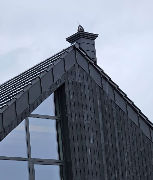 The charred Douglas Fir provides natural resistance to insects and weather, while the oiled Spruce adds warmth and highlights the wood grain, ageing gracefully over time. Together, they create a facade that’s not only striking in appearance but also engineered for resilience.