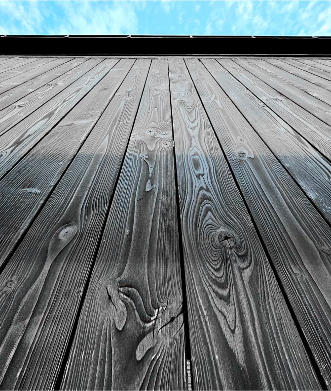 For this residential project, the facade is a refined composition of two complementary wood types: charred Douglas Fir, treated using our controlled flame technique to achieve a deep, matte black finish with subtle texture, and Scandinavian Spruce, oiled in a warm hazelnut tone.