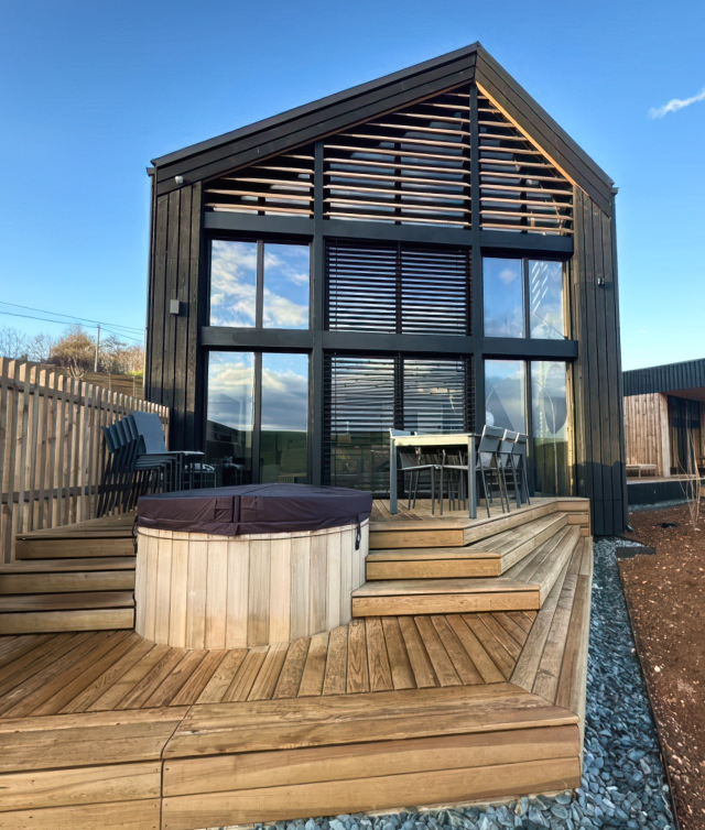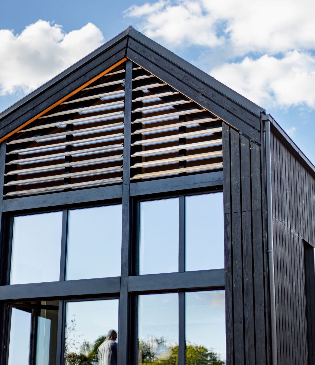 Set against a backdrop of lush forests and open meadows, Ostara is a sanctuary of calm and considered beauty. Our contribution: black charred Douglas Fir cladding that wraps the building in a bold, elegant skin. It not only complements the surrounding landscape but also gives the structure a strong, sculptural presence, balancing luxury with nature in perfect harmony.